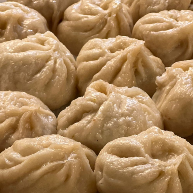 Raviolone baozi con carne, bambù, carote, soia, funghi e grano